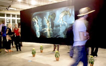 6 abgehängte Körper (4m x 4m) werden frei im Raum angeordnet. 3 Typen - offen, halboffen und geschlossen - zonieren den Raum und bilden die eigentliche Ausstellungsfläche.