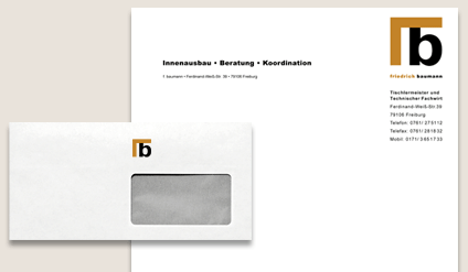 Für die Geschäftstätigkeit des Handwerkbetrie-bes Friedrich Baumann wurde ein Corporate Design unter Berücksichtigung eines geringen Werbebudgets entwickelt, das Logo, Briefschaft sowie die Fahrzeugbeschriftung umfasst.